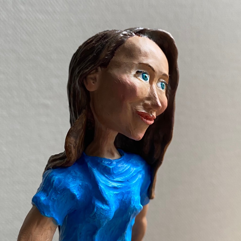 I completed an BA and MA in art in Cardiff working in oil paint. Now, as well as painting, I work with polymer clay, making portraits to commission, and with needle and thread making toys and clothing.